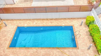 בריכת שחייה פרטית עם אזור ישיבה מטופח, גינה נעימה ומרפסת מוצלת – שילוב מושלם להרפיה, אירוח ולחיים באווירה ים תיכונית.