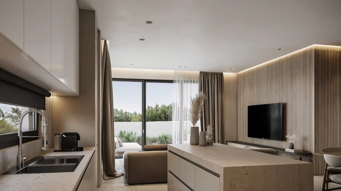 במיקום אידיאלי בשכונה המבודדת קאפאריס, פרויקט מפואר זה עם גינות פרטיות וכניסה סגורה, עם הארכיטקטורה החיצונית המדהימה שלו ועיצוב הפנים האופנתי של האי.